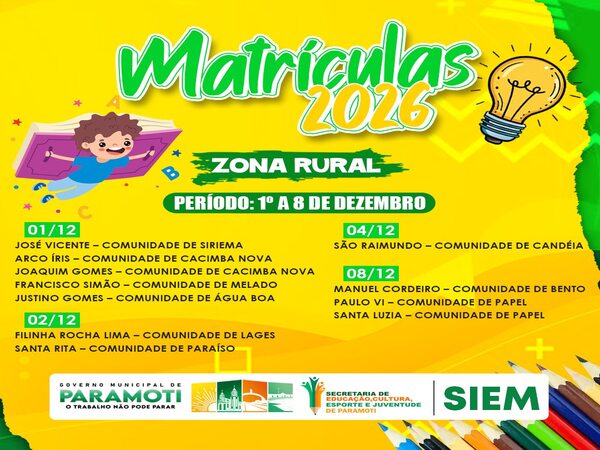A Prefeitura de Paramoti, através da Secretaria de Desenvolvimento Social, divulga a lista dos novos beneficiários do Programa Bolsa Família do Governo Federal.
