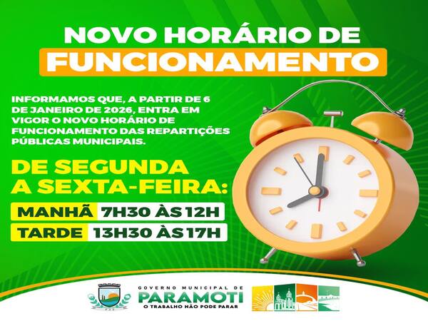 A gestão "O Trabalho Não Pode Parar" reafirma seu compromisso com os servidores municipais ao antecipar o pagamento do salário referente ao mês de dezembro para esta quinta-feira, 26 de dezembro de 2025. A iniciativa demonstra a responsabilidade, o respeito e a valorização que o Governo Municipal de Paramoti dedica àqueles que, diariamente, contribuem com seu trabalho para o desenvolvimento da nossa cidade. A medida fortalece a confiança e o reconhecimento dos servidores, reforçando o compromisso com a construção de um município cada vez mais forte, justo e desenvolvido, sustentado por profissionais motivados e valorizados. Neste clima de final de ano, desejamos a todos os servidores e a suas famílias um 2026, repleto de paz, saúde e esperança. Boas festas! #GovernodeParamoti #67AnosdeEmancipaçãoPolítica #OTrabalhoNãoPodeParar